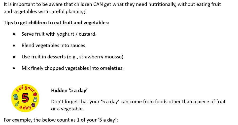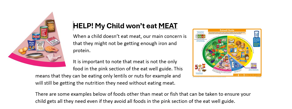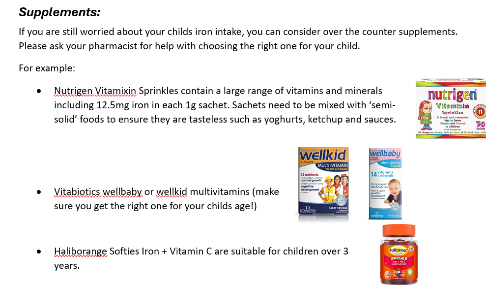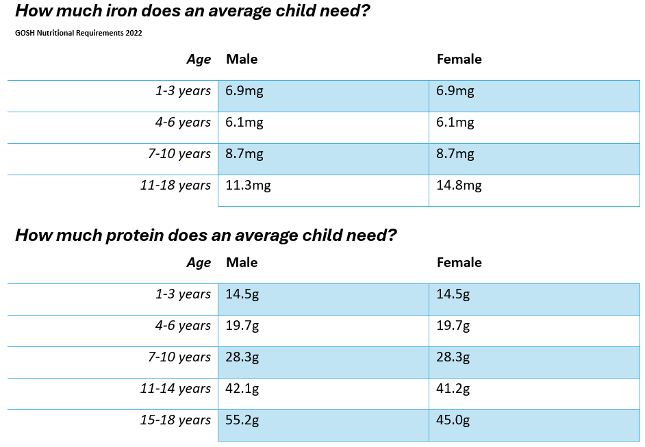 If you are still concerned that your child isn’t getting enough iron and protein, then please contact your GP to arrange a referral to the dietitian.