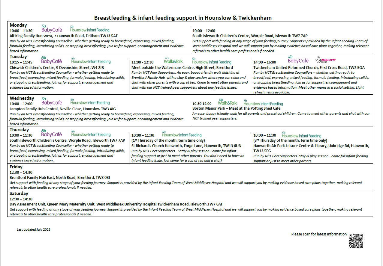 - 24 hour National Breastfeeding Helpline: 0300 100 0212